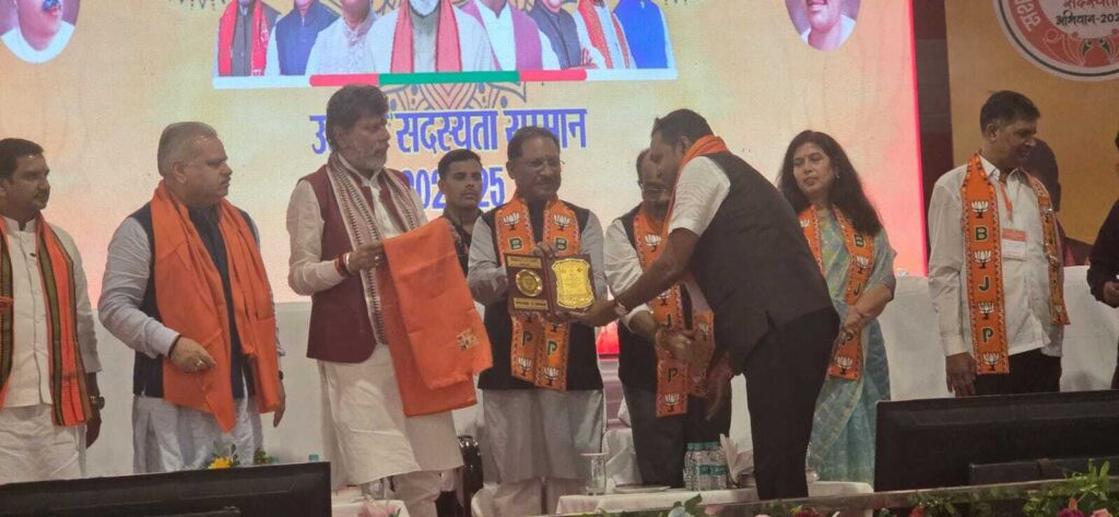 जांजगीर-चांपा। भारतीय जनता पार्टी की प्राथमिक सदस्यता अभियान 2024-25 के तहत नवा रायपुर स्थित मुख्यमंत्री निवास, अटल नगर में आयोजित उत्कृष्ट सदस्यता सम्मान समारोह में जांजगीर-चांपा जिला भाजपा उपाध्यक्ष एवं सदस्यता अभियान के जिला संयोजक अमर सुल्तानिया को “सदस्यता श्री” सम्मान से सम्मानित किया गया। मुख्यमंत्री विष्णुदेव साय, प्रदेश अध्यक्ष किरण सिंह देव, विधानसभा अध्यक्ष डॉ. रमन सिंह, क्षेत्रीय संगठन महामंत्री अजय जमवाल, प्रदेश संगठन महामंत्री पवन साय, केंद्रीय मंत्री तोखन साहू, राष्ट्रीय उपाध्यक्ष सरोज पांडेय, उप मुख्यमंत्री अरुण सवा, विजय शर्मा, सदस्यता प्रभारी अनुराग सिंह देव सहित शीर्ष नेताओं के द्वारा यह सम्मान अमर सुल्तानिया को प्रदान किया गया।