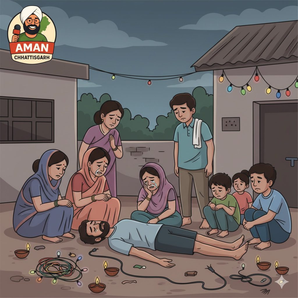 चांपा (छत्तीसगढ़): दीपावली के त्यौहार की तैयारियों के बीच चांपा नगर से एक बेहद दर्दनाक घटना सामने आई है। नगर के सदर बाजार क्षेत्र में झालर लाइट लगाने के दौरान करंट लगने से एक मजदूर की मौत हो गई। हादसे की खबर फैलते ही इलाके में अफरा-तफरी मच गई और दीपावली की खुशियों के बीच मातम छा गया।