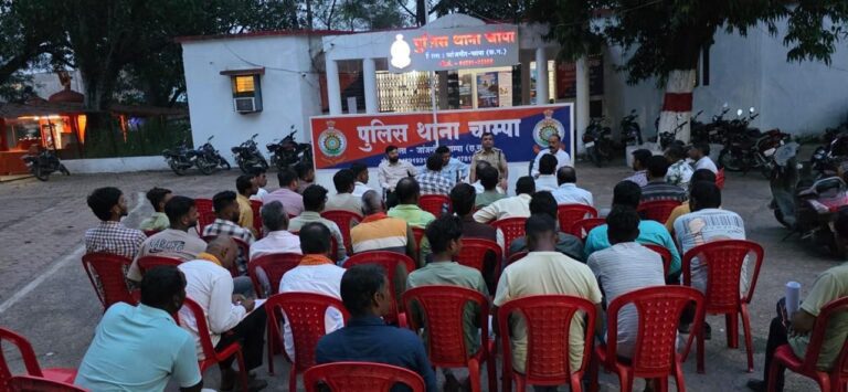 चांपा। आगामी नवरात्रि एवं दुर्गा उत्सव को लेकर आज शनिवार को थाना चांपा परिसर में शांति समिति की बैठक आयोजित की गई। बैठक में चांपा एसडीएम पवन कोसमा, तहसीलदार प्रशांत पटेल,थाना प्रभारी सहित नगर के गणमान्य नागरिक सहित समिति के पदाधिकारी उपस्थित रहे। टीआई जे.पी. गुप्ता ने साफ शब्दों में कहा कि प्रत्येक दुर्गा समिति अपने पंडाल की सुरक्षा व्यवस्था स्वयं सुनिश्चित करे। उन्होंने कहा कि भीड़ नियंत्रण एवं अभद्र तत्वों से निपटने के लिए समितियों को स्वयंसेवक (वालंटियर) नियुक्त करने होंगे साथ ही पंडाल के अंदर-बाहर सीसीटीवी कैमरा अवश्य लगाए। पंडाल के भीतर और बाहर पर्याप्त सुरक्षा व्यवस्था करना अनिवार्य होगा।