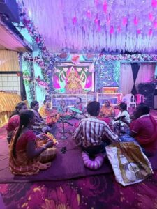 चांपा। शारदीय नवरात्रि के पवन अवसर पर हर वर्ष की भांति इस वर्ष भी हटरी बाजार चांपा में मोहल्ले वासियों के द्वारा शारदीय नवरात्रि में माँ दुर्गा की मूर्ति पूजन हेतु स्थापित कि जाती रही है। जय मां दुर्गा उत्सव समिति हटरी बाजार द्वारा प्रतीकात्मक प्रतिमा स्थापित की गई है जो कि भक्तों को खूब भा रही है।माता के दर्शन हेतु भक्तों का ताता लगा रहा है । सुबह शाम आरती के समय भक्तों की अपार भीड़ देखने को मिल रही है तो वही समिति के हिमांशु शर्मा ने बताया कि यह आयोजन विगत 35 वर्षों से किया जा रहा है हर वर्ष अपने आप में खास होता है माता रानी की कृपा सदैव उनके भक्तों पर बनी रहती है। यही वजह है कि इतने वर्षों से यह आयोजन निरंतर चला आ रहा है। इस बार समिति द्वारा माता के आगमन पर भव्य स्वागत किया स्वागत पश्चात पंडाल पर माता की मूर्ति स्थापित की गई है। प्रत्येक दिन माता को विशेष भोग लगाए जाते है और भक्तों को भी बाटे जाते है। सुबह शाम को माता की आरती बाहर से आए कलाकारों द्वारा संगीतमय आरती की जा रही है तो उसके बाद भजनों की अविरल धारा प्रवाह भी होती है आकर्षक लाइटिंग और भव्य सजावट जो की दर्शन को आए श्रद्धालुओं को खूब पसंद आ रही है । । समिति के आचार्य पंडित पद्मेश शर्मा ने बात चित के दौरान बताया कि इस बार नवरात्रि दस दिवसीय की है प्रथम दिन वेदी पूजन, घट स्थापना के साथ पूजा अर्चना प्रारंभ हो गई है। वही सप्तमी को माता को रात्रि में विशेष पूजा के बाद नींबू की माला अर्पित की जाएगी ।तो समिति द्वारा सप्तमी के दिन ही सांध्य कालीन महाआरती का आयोजन रात्रि 8बजे रखा गया है जिसके बाद अष्टमी को कुंवारी भोजन और नवमी को दोपहर में हवन सम्पन्न होगा । प्रतिदिन शाम को 6 से 10 बजे तक भजन सांध्य के कार्यक्रम का आयोजन किया गया है । माँ के दरबार में आप सभी सादर शामिल होकर भक्ति,श्रद्धा,और उत्साह के साथ नवरात्रि महापर्व की दिव्यता का हिस्सा बने।