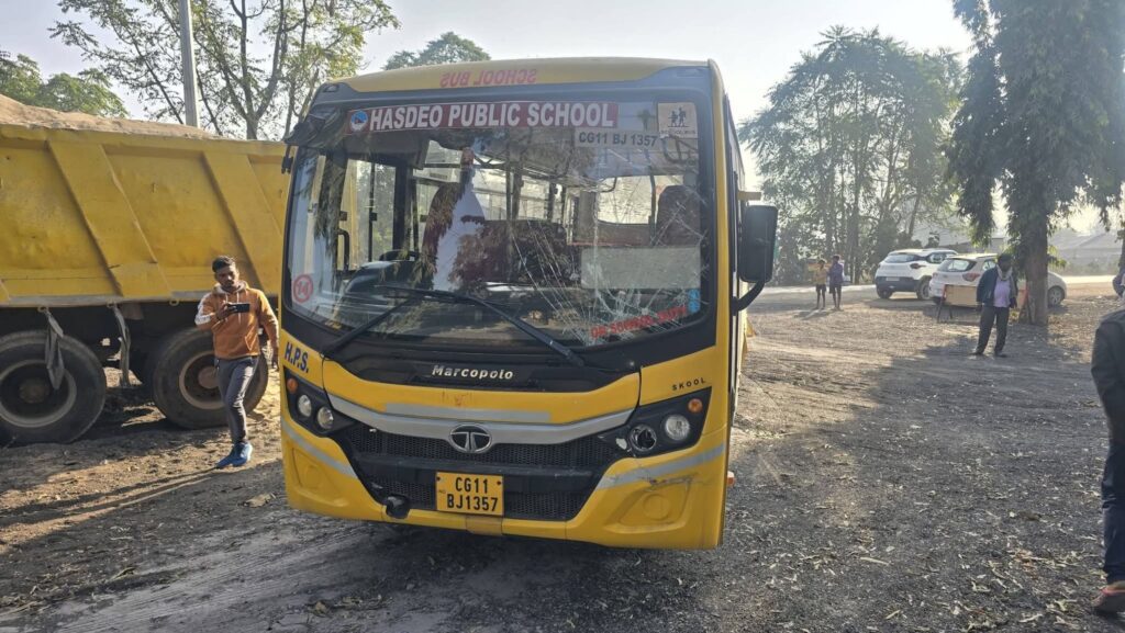 हसदेव पब्लिक स्कूल, चाम्पा की बच्चों से भरी स्कूल बस को आज सुबह एक तेज़ रफ्तार ट्रेलर ने पीछे से टक्कर मार दी। हादसे के वक्त बस में बड़ी संख्या में स्कूली बच्चे सवार थे। टक्कर के बाद बस में अफरा-तफरी मच गई और बच्चे दहशत में आ गए।