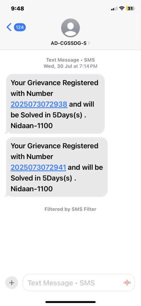 рд╣рдорд╛рд░реА рдЕрдорди рдЫрддреНрддреАрд╕рдЧрдврд╝ рдХреА рдЯреАрдо рдиреЗ 30 рдЬреБрд▓рд╛рдИ 2025 рдХреЛ рд╕реНрдЯреНрд░реАрдЯ рд▓рд╛рдЗрдЯ рджреБрд░реБрд╕реНрддреА рдХреА рд╢рд┐рдХрд╛рдпрдд рдирд┐рджрд╛рди-1100 рдкрд░ рджрд░реНрдЬ рдХрд░рд╛рдИ рдЧрдИ рдереАред рд▓реЗрдХрд┐рди 01 рд╕рд┐рддрдВрдмрд░ 2025 рддрдХ рднреА рди рддреЛ рдХреЛрдИ рдХрд╛рд░реНрд░рд╡рд╛рдИ рд╣реБрдИ рдФрд░ рди рд╣реА рдХреЙрд▓ рд░рд┐рд╕реАрд╡ рдХрд┐рдпрд╛ рдЧрдпрд╛ред рдлреЛрди рдХрд░рдиреЗ рдкрд░ рднреА рдШрдВрдЯреЛрдВ рд╕рд┐рд░реНрдл рдШрдВрдЯреА рдмрдЬрддреА рд╣реИ, рдЬрд╡рд╛рдм рдХреЛрдИ рдирд╣реАрдВ рджреЗрддрд╛ред