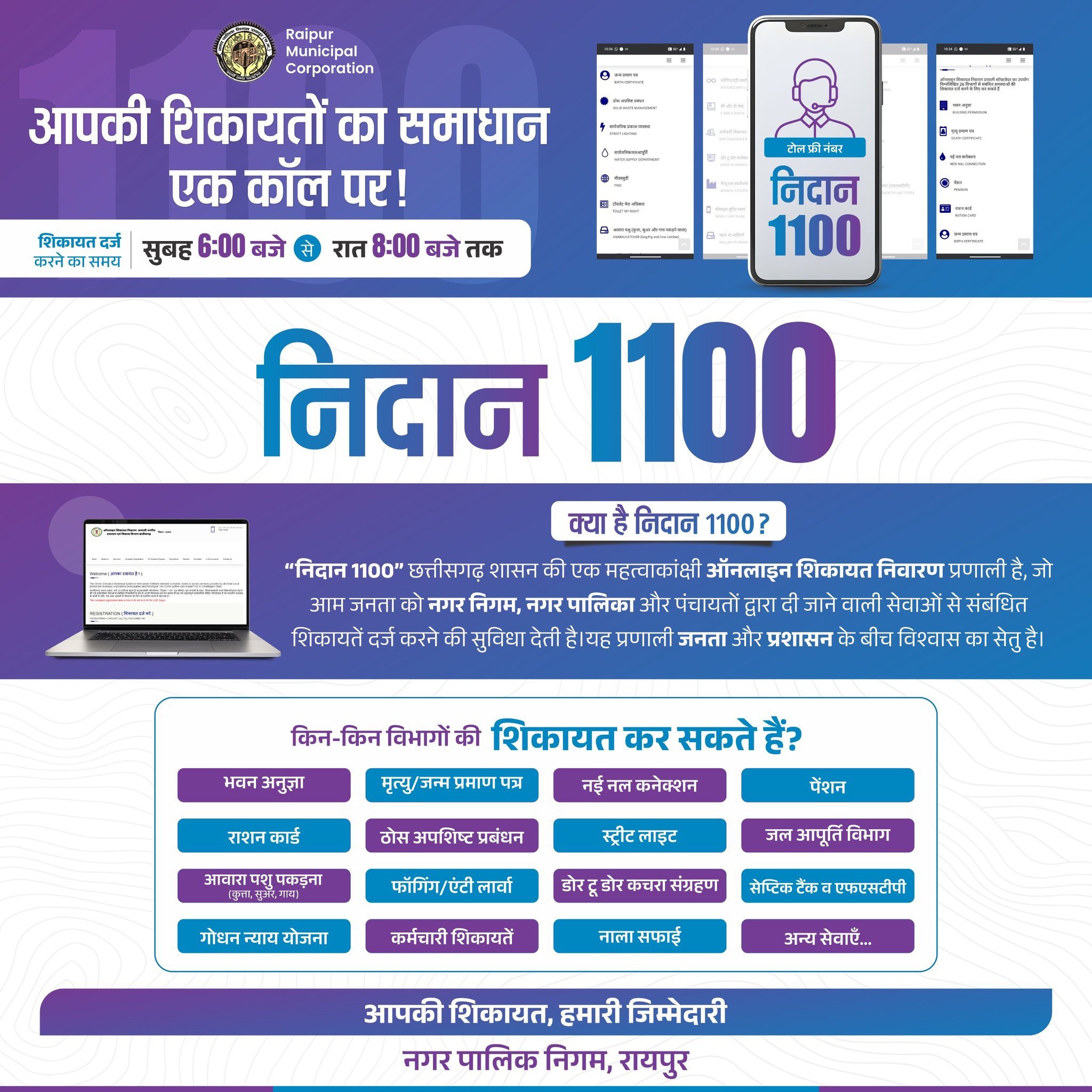 рдЫрддреНрддреАрд╕рдЧрдврд╝ рд╕рд░рдХрд╛рд░ рдХреА рдорд╣рддреНрд╡рд╛рдХрд╛рдВрдХреНрд╖реА рдпреЛрдЬрдирд╛ рдирд┐рджрд╛рди-1100 рдХреА рд╣рдХреАрдХрдд рдЕрдм рдЬрдирддрд╛ рдХреЗ рд╕рдмреНрд░ рдХрд╛ рдЗрдореНрддрд┐рд╣рд╛рди рд▓реЗ рд░рд╣реА рд╣реИред рддреНрд╡рд░рд┐рдд рд╕рдорд╛рдзрд╛рди рдХреЗ рдмрдбрд╝реЗ-рдмрдбрд╝реЗ рджрд╛рд╡реЗ рдХрд░рдиреЗ рд╡рд╛рд▓реА рдЗрд╕ рд╣реЗрд▓реНрдкрд▓рд╛рдЗрди рдкрд░ рджрд░реНрдЬ рд╢рд┐рдХрд╛рдпрддреЗрдВ рдорд╣реАрдиреЛрдВ рддрдХ рдЕрдзрд░ рдореЗрдВ рд▓рдЯрдХреА рд░рд╣рддреА рд╣реИрдВред
