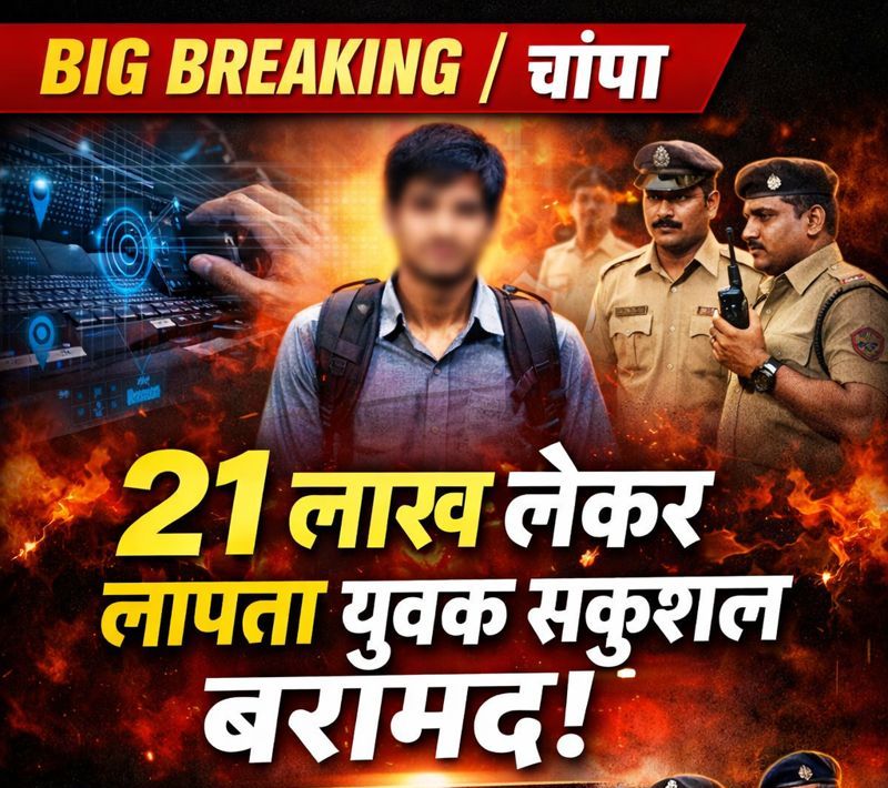 21 लाख रुपये लेकर रहस्यमय तरीके से लापता हुए युवक को लेकर अब सबसे बड़ा अपडेट सामने आया है। सूत्रों के मुताबिक, चांपा पुलिस और साइबर सेल की संयुक्त टीम ने युवक को सकुशल बरामद कर लिया है।