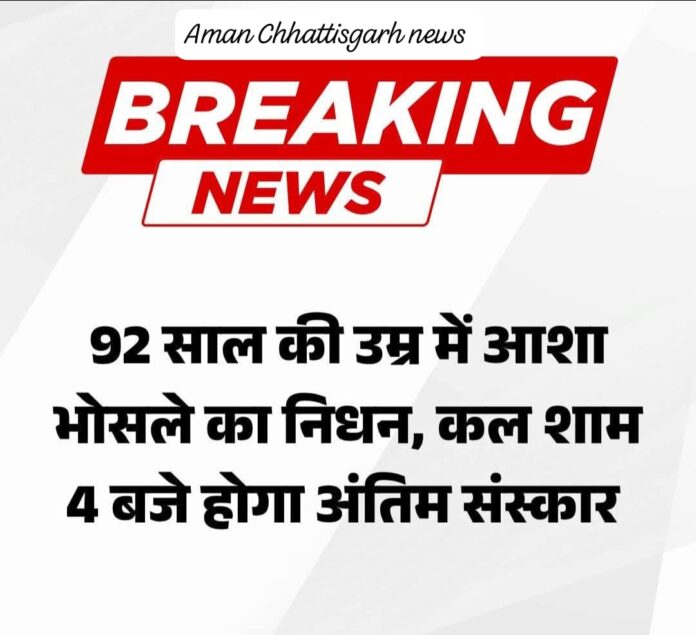 BREAKINGNEWS | 92 साल की उम्र में आशा भोसले का निधन, कल शाम 4 बजे होगा अंतिम संस्कार