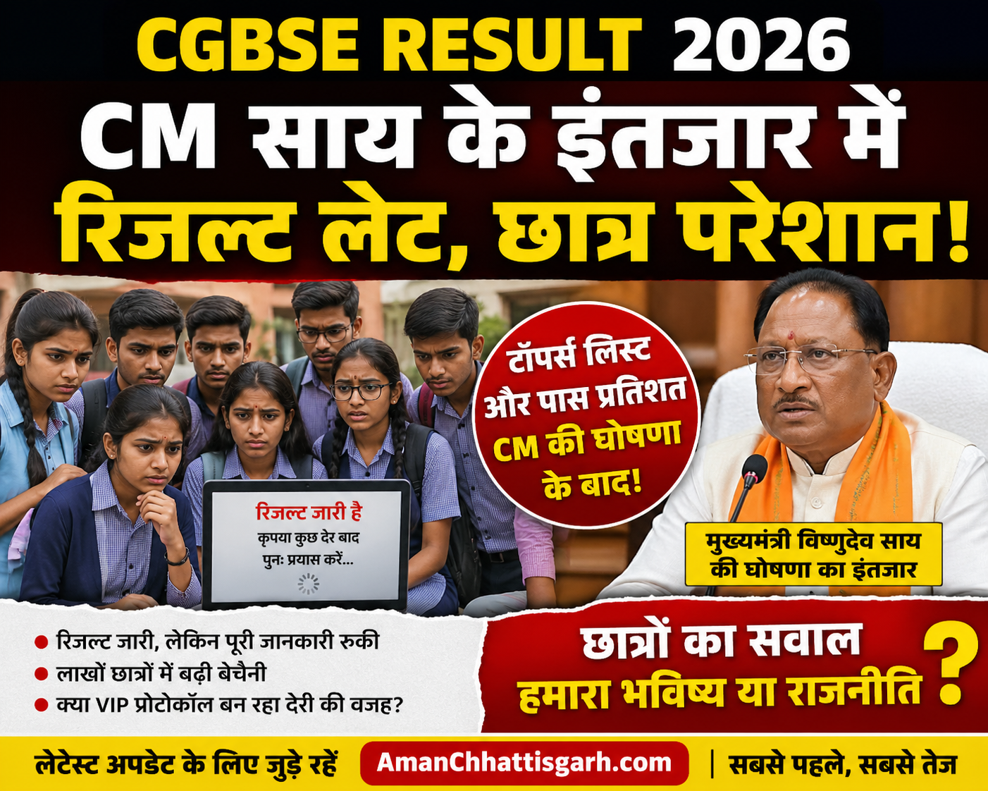 छत्तीसगढ़ में 10वीं और 12वीं बोर्ड परीक्षा के रिजल्ट को लेकर बड़ा अपडेट सामने आया है। जहां एक ओर रिजल्ट जारी होने की खबर है, वहीं दूसरी ओर **टॉपर्स लिस्ट और पूरी जानकारी में देरी से लाखों छात्र परेशान नजर आ रहे हैं**।